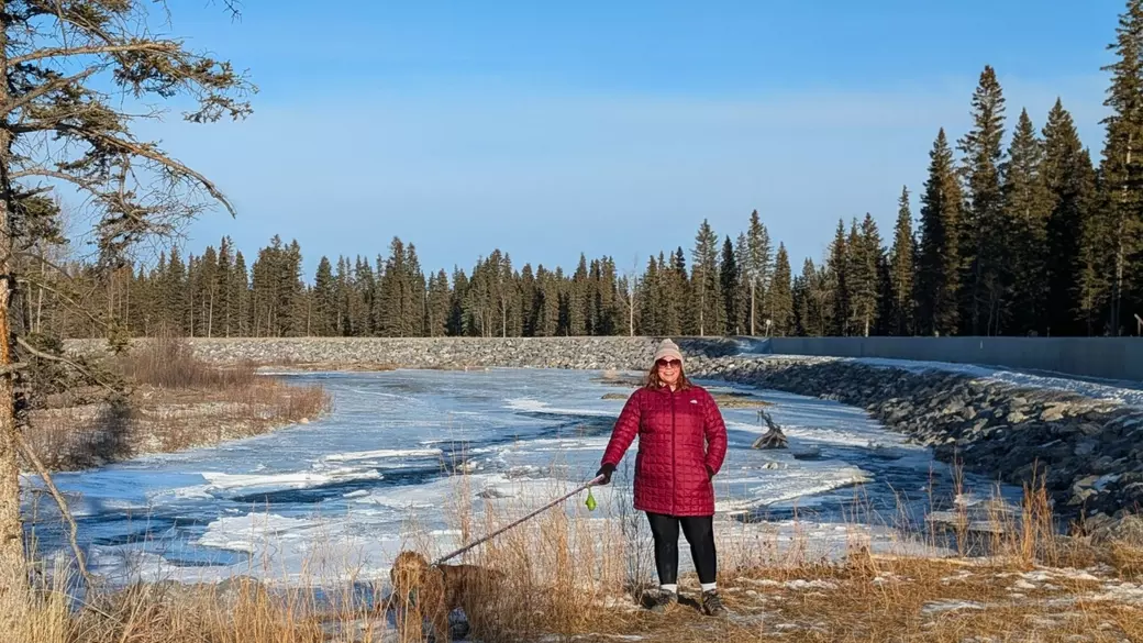 Photo: Elise on a walk with her fur baby Walter in beautiful Bragg Creek... where she calls home.
